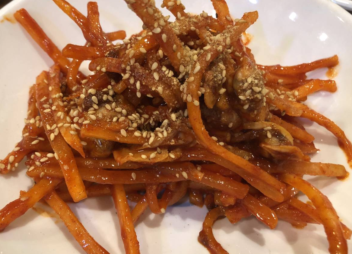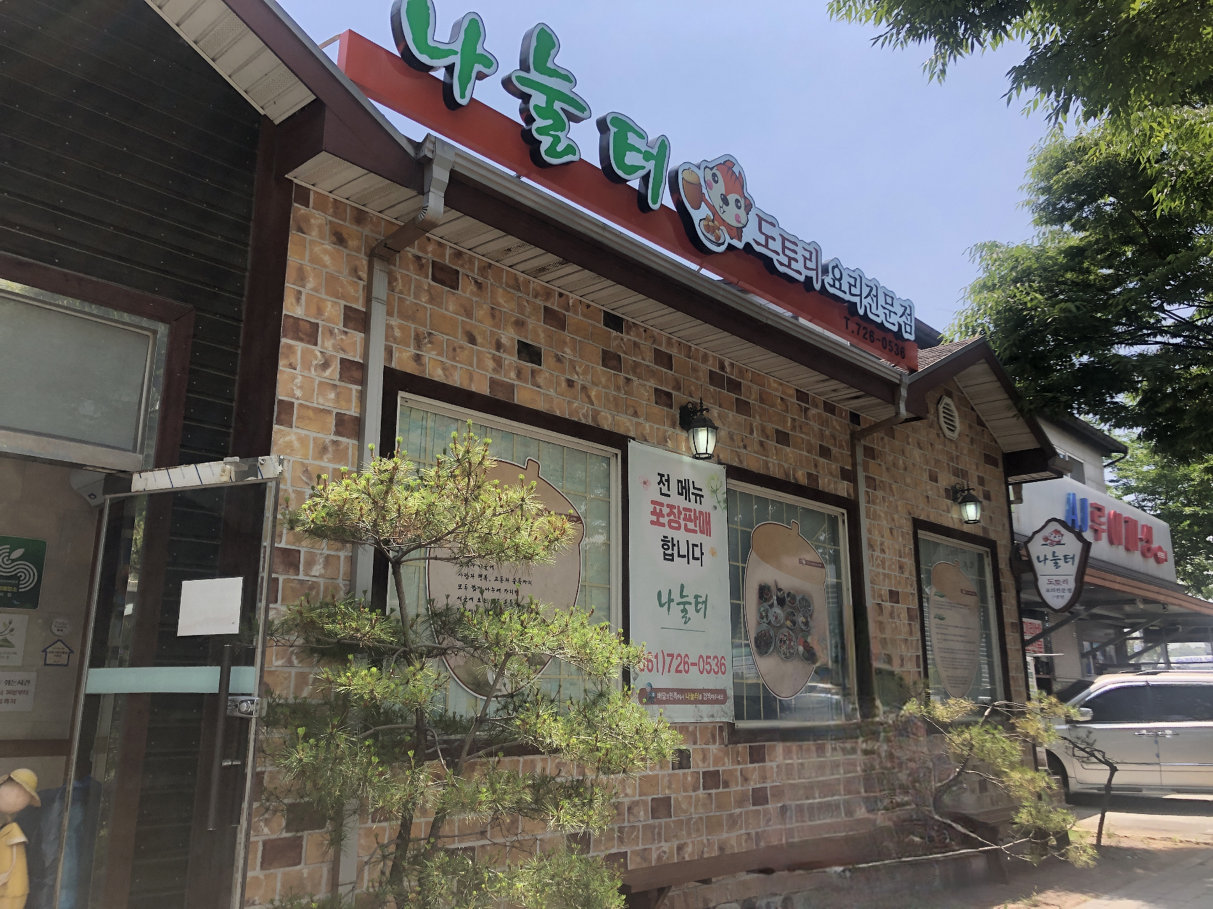 도토리묵무침 세트(2인분)를 주문했는데 고소한 도토리묵과, 도토리 전 그리고 임자탕...