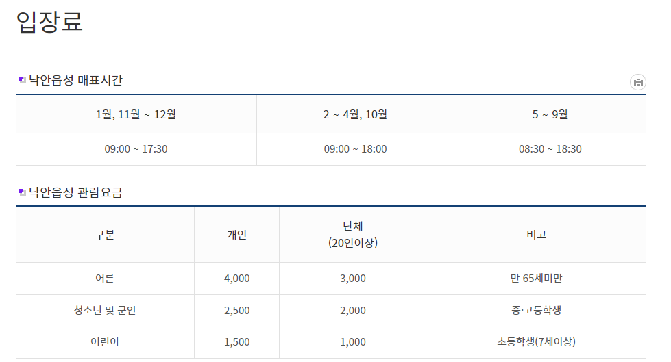 주의) 계절별로 일몰시간이 다르기 때문에 운영시간 확인이 필요합니다.