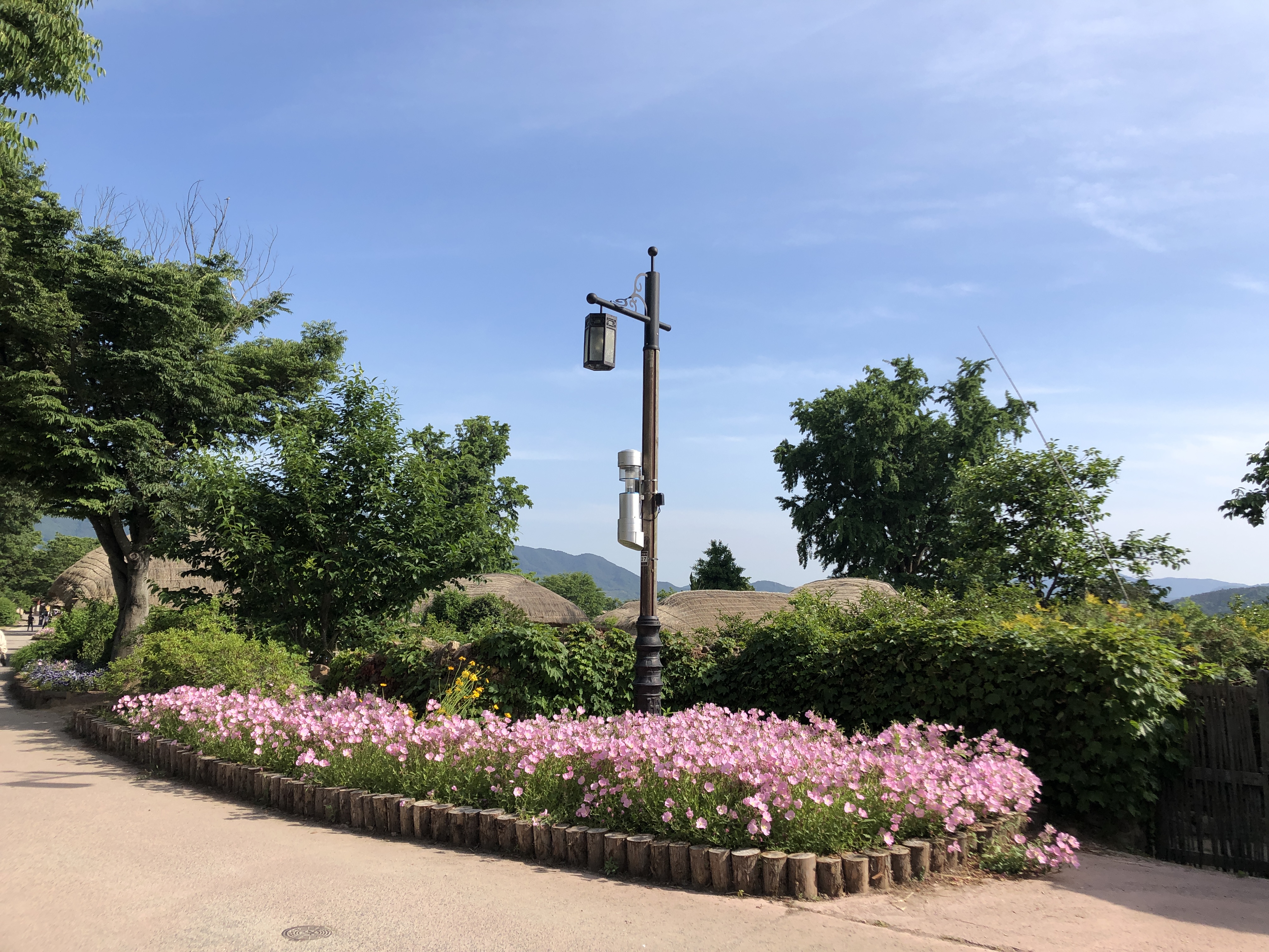 뻥뚤린 하늘과 조화롭게 구성되어 있는 꽃과 나무들 아직도 생각이 나는 풍경이네요.