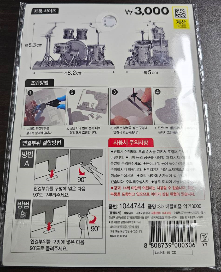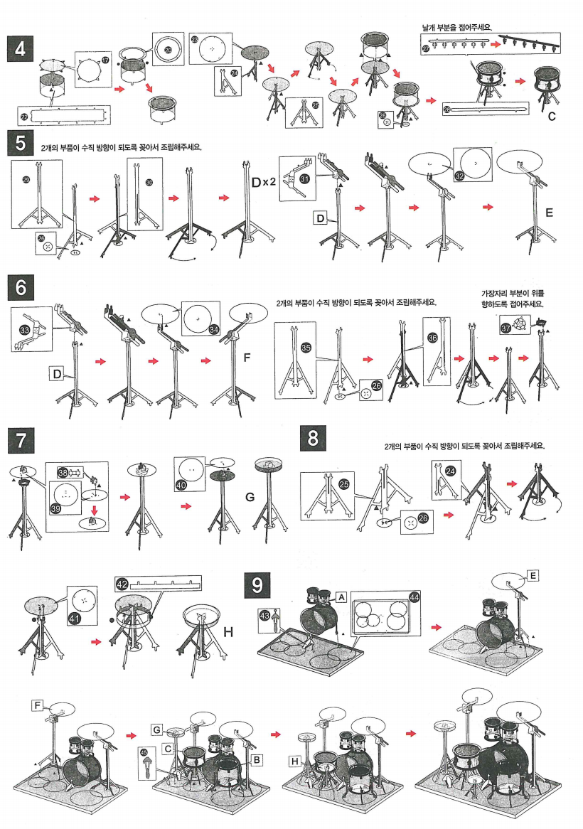 드럼의 경우는 조립 난이도보다는 부품 구성이 많아서 시간도 많이 소요되었네요.