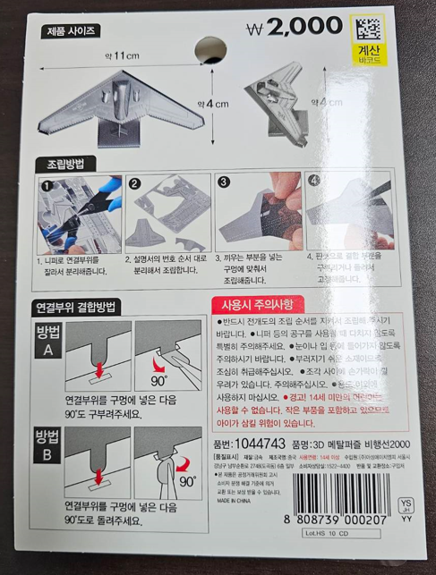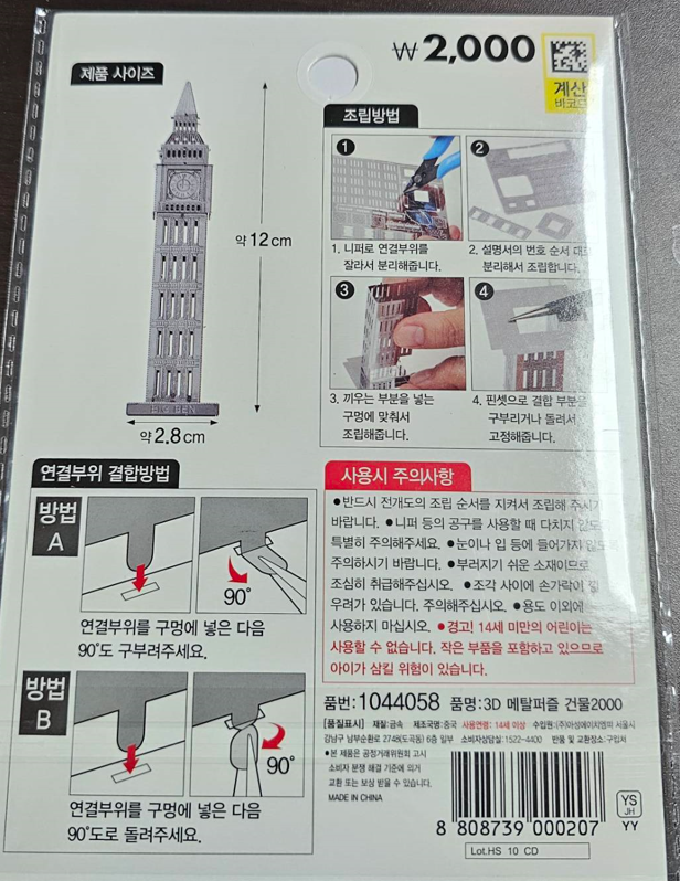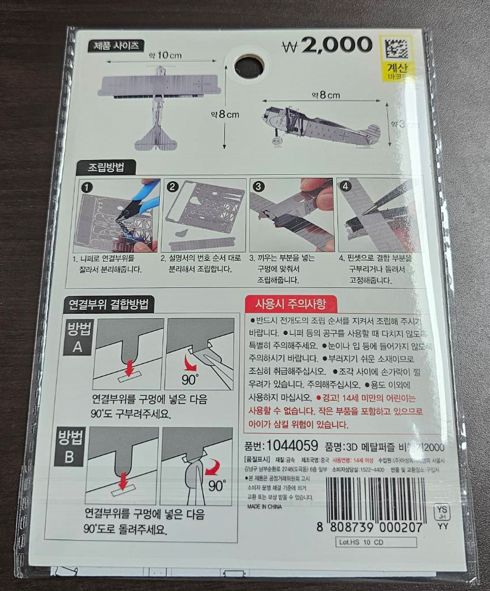 2천원짜리 메탈퍼즐은 구조도 단순하고 부품도 큼지막해서 처음 메탈퍼즐을 입문하시는 분들께 좋습니다.