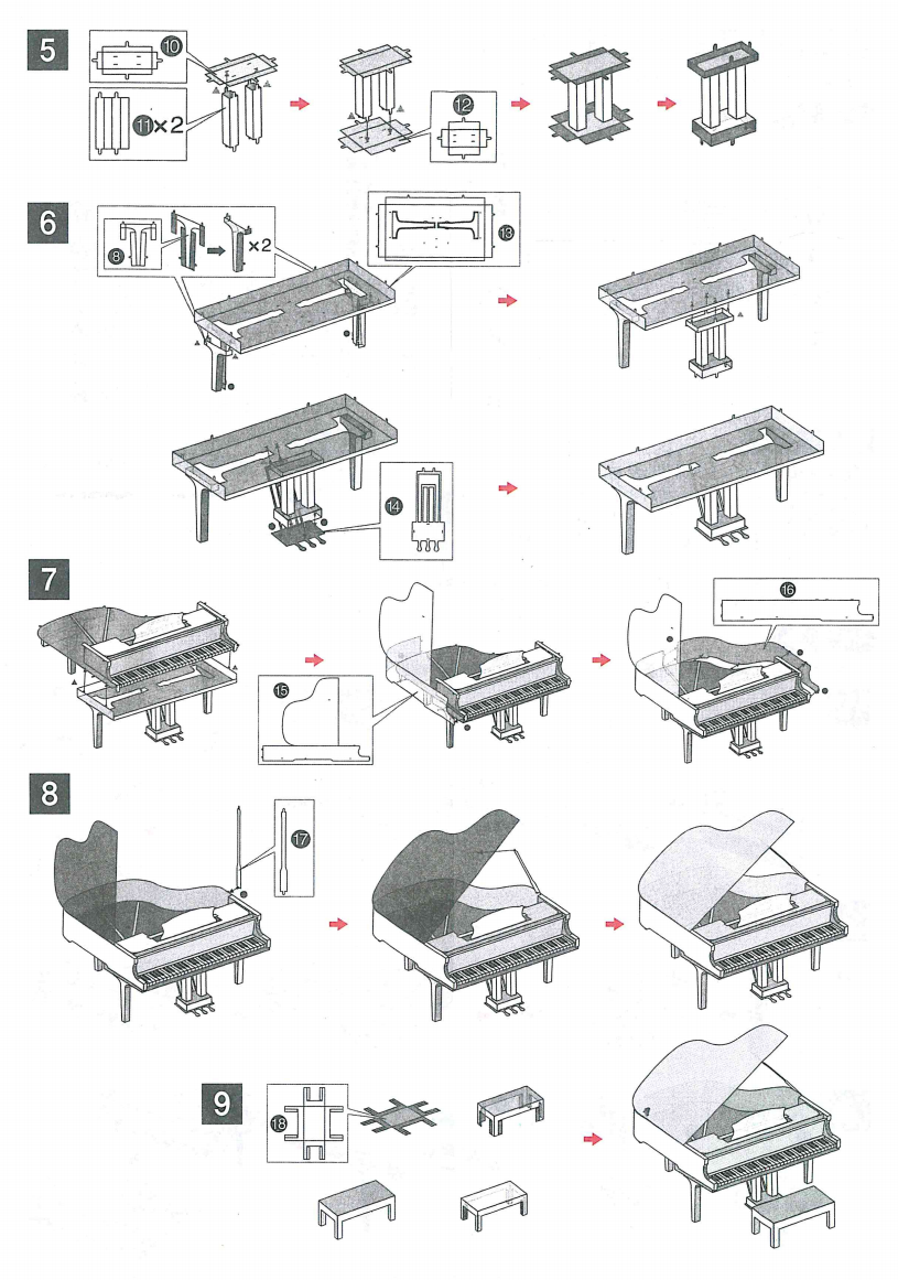 피아노 모형 사진을 참고하지 않으면 방향을 확인하기가 어려웠습니다.