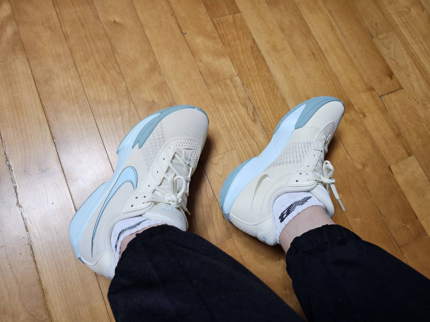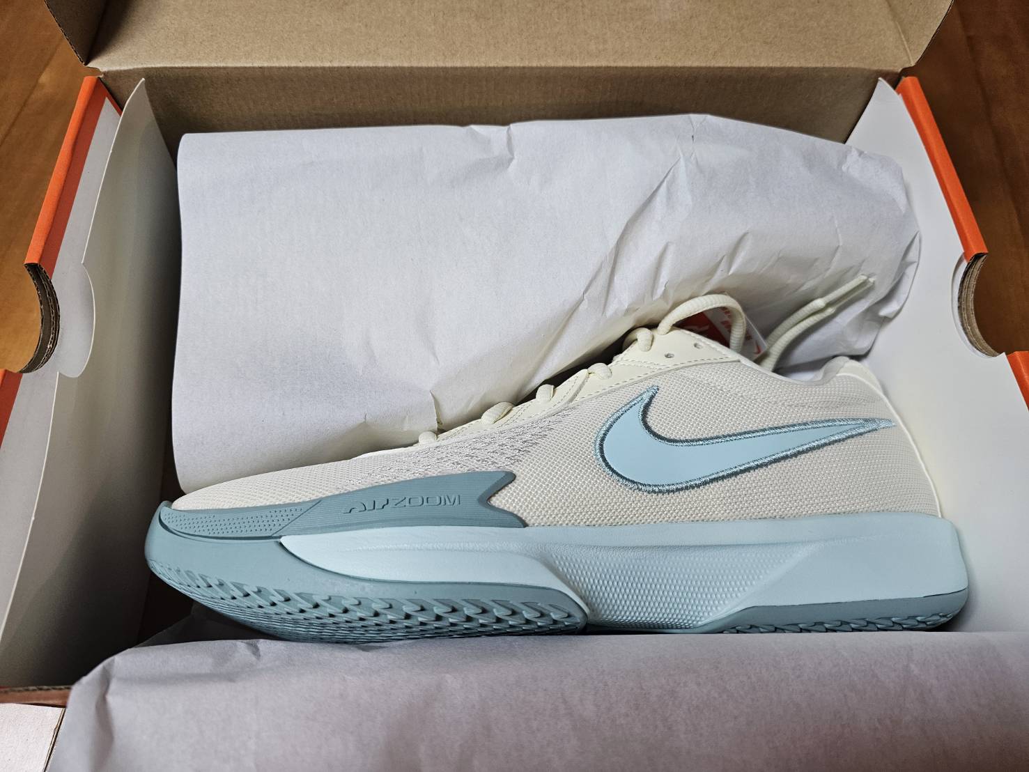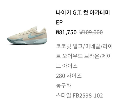 아카데미는 2종류의 색상이 있었는데 무난하게 회색을 살까도 고민을 했었습니다. 야외용으로 신다 보면 금방 때가 타고 지저분해질 것 같았기 때문이죠, 하지만 그래도 농구화는 화사해야 한다는 폼생폼사적 마인드로 24년도에 새로운 색상으로 출시된 밀크&아이스 색상으로 구매 완료 하였습니다.
