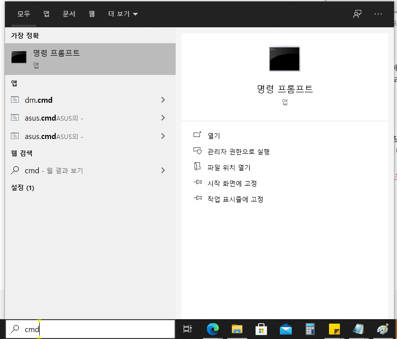 이제 CMD 명령어를 천천히 따라오시면 됩니다.