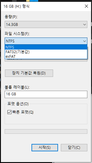 기본 방식으로 FAT32로 설정이 되어있는 경우가 있는데요.