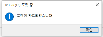 usb 포맷 진행에 있어서 마지막 명령어입니다.